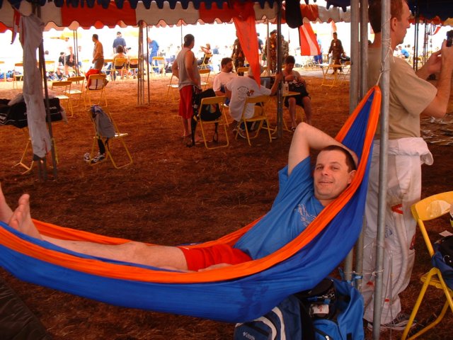 Le hamac tient toujours ... pour le momentIl faut dire qu'il est acroché à une boite en fer blanc !!!